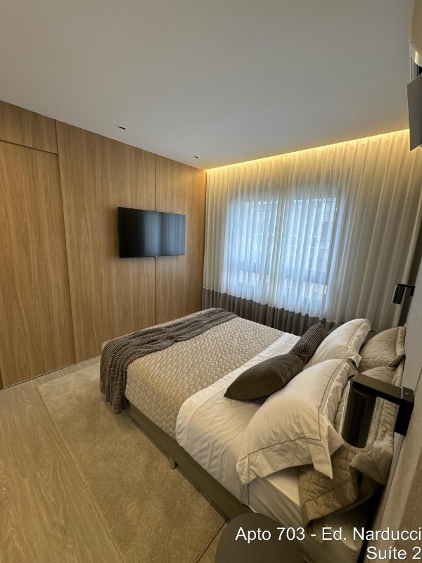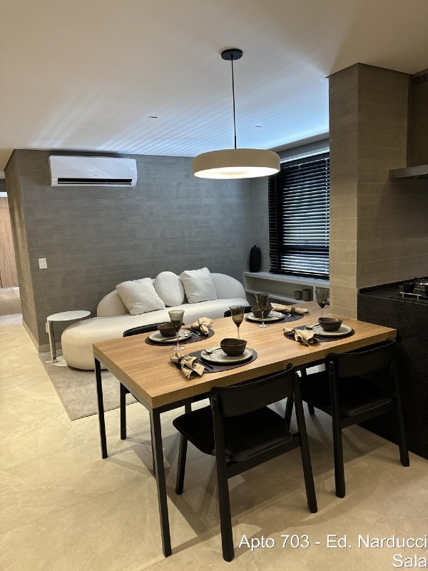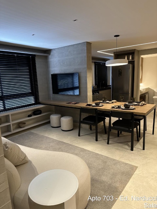 Apartamento encontra-se decorado com móveis, adornos, eletrodomésticos, iluminação ar condicionado e armários montados